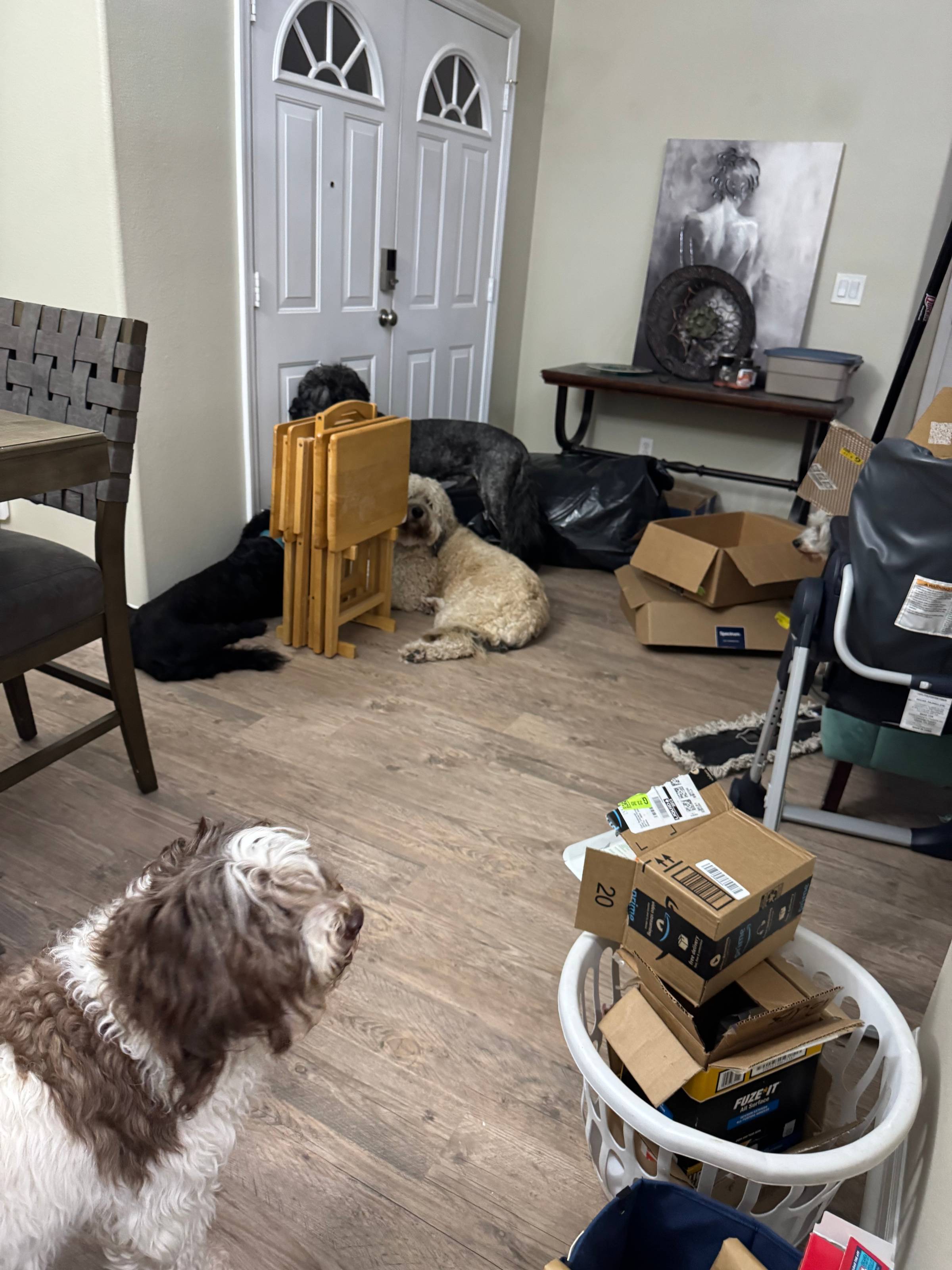 My dogs think this is the greatest adventure ever invented, and I've opened the same "kitchen stuff" box four times looking for a spatula that I'm 87% sure is in the garage. With the holiday decorations. Obviously.